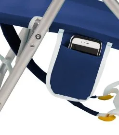 Relax beachside on the Backpack Beach Chair featuring a head pillow and cup holder.